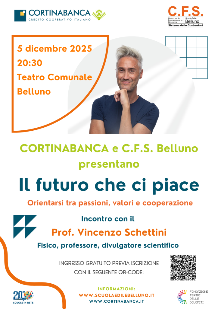 Giovedì 5 dicembre, alle 20.30, Schettini porterà sul palco del Teatro “Dino Buzzatti”  di Belluno lo spettacolo–incontro “Il futuro che ci piace”, un viaggio tra scienza, tecnologia, curiosità e visioni sul domani, raccontato con il suo stile appassionato e immediato.